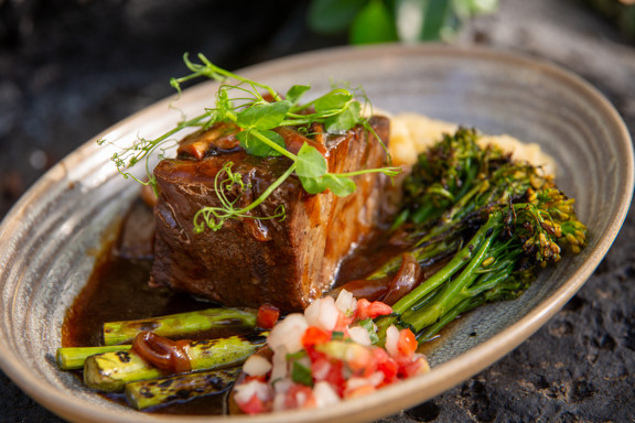 시그니처 메뉴:하와이 비프 로코 모코 gf 소갈비 찜 & 오키나와 고구마 gf 훌리훌리 치킨 바삭한 통생선 브륄레드 마우이 어니언 치즈버거 반주: |